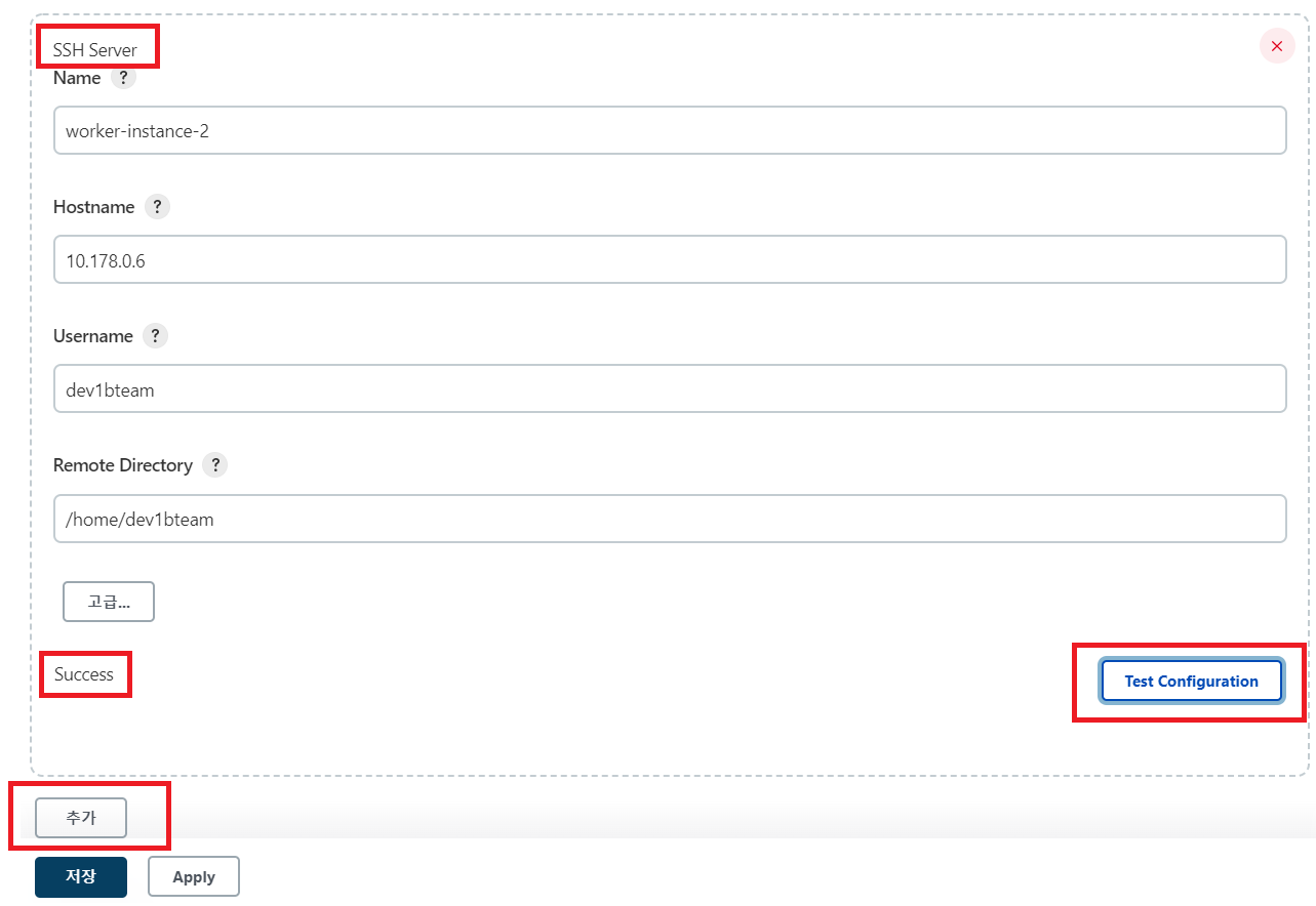 그 다음 Jenkins 관리 -> 시스템설정에서 새로운 SSH Server를 추가해 주어야 한다.